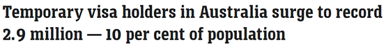 值得注意的是,这些临签持有者已占到澳洲总人口的10%。